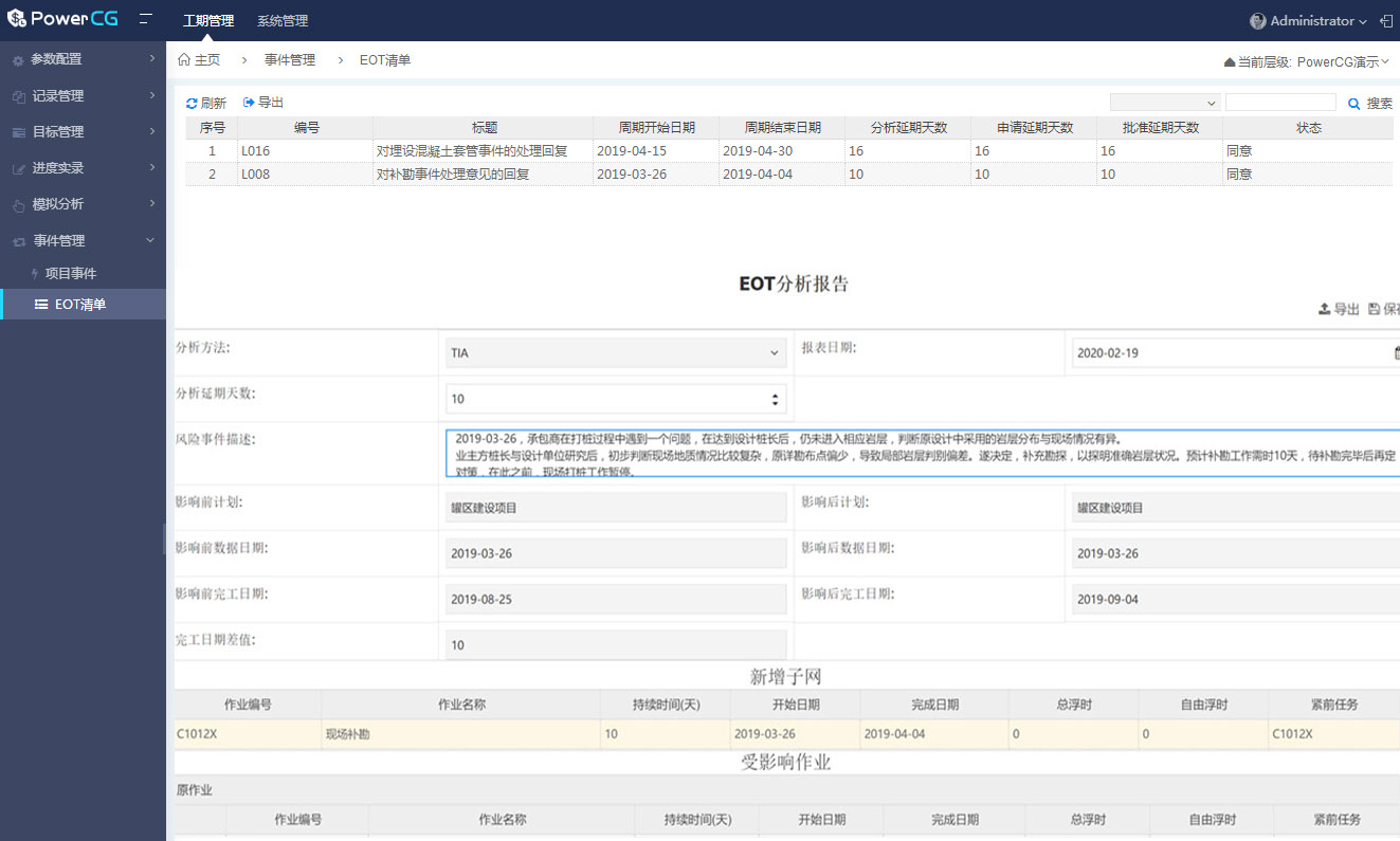 PowerCG概述 PowerCG是以国际先进的项目管理索赔思想和方法为核心,结合普华科技近三十年来在国内外大中型项目管理的实践经验,自主研发的国际工程索赔防御系统。通过基准计划策划承包商在项目中的执行范围,并不断的更新或调整项目计划,反映当前的项目情况与变更因素,运用系统及时地收集项目实施过程中与索赔相关的各类信息和原始素材,形成工期延误的闭环管理,帮助企业提高工期索赔与反索赔能力,为用户争取最大的权益提供数据支持。