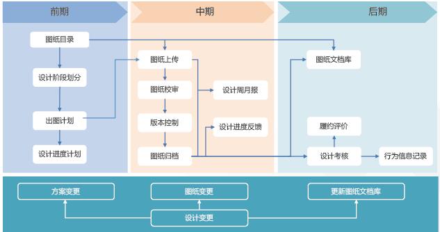 对设计过程的规范化管理,设计各类文件可追溯、沟通过程留痕,团队协作、施工配合、资料归档等过程文件的信息化管理。